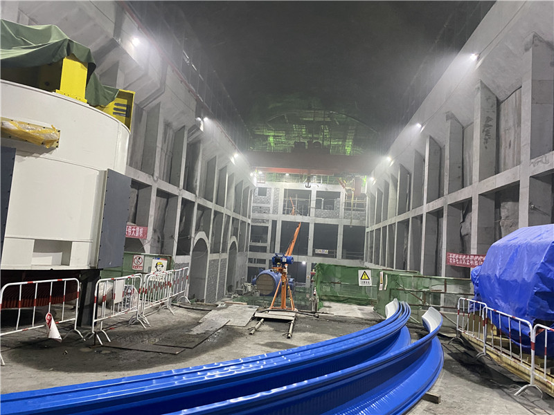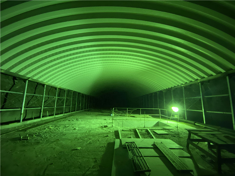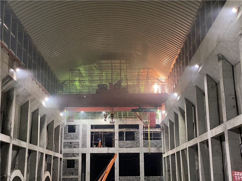實(shí)際安裝主變室拱形屋頂?shù)倪^(guò)程中,由于白天洞室內(nèi)有人在地面進(jìn)行機(jī)電安裝作業(yè),我們的施工人員必須錯(cuò)峰施工。一般我們?cè)诿刻焱砩?點(diǎn)進(jìn)入洞室內(nèi),施工到凌晨下班。實(shí)際上山洞內(nèi)沒(méi)有光源,白天還是夜里從事安裝作業(yè)在視線上都沒(méi)有差別。進(jìn)過(guò)一周的努力,主變室的拱形屋頂即將安裝完成了。